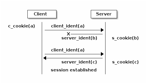 client will send first, server will reply with same. if this is a new session, the client and server can proceed to the message exchange.