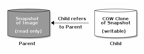 The terms “parent” and “child” refer to a Ceph block device snapshot (parent) and the corresponding image cloned from the snapshot (child). These terms are important for the command line usage below.